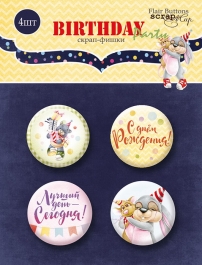 Набор скрап-фишек для скрапбукинга BIRTHDAY PARTY, 4 шт