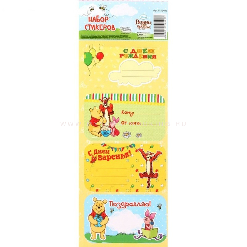 Наклейки бумажные С ДНЕМ ВАРЕНИЯ! - Медвежонок Винни, 7х16 см