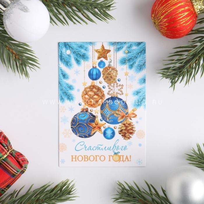 Открытка-шильдик "Счастливого Нового года!" глиттер, 8*5,5 см