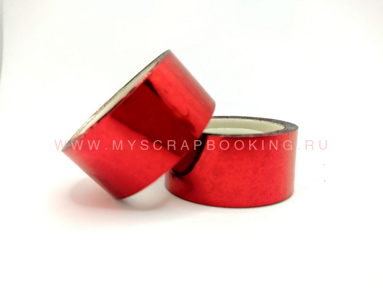Лента клейкая, Скотч голографический КРАСНЫЙ со звездочками. Лента приклеивается к любой поверхности, придавая ей праздничное настроение.