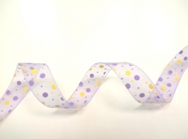 Лента органза ФИОЛЕТОВАЯ В ЦВЕТНОЙ ГОРОХ, 1,6 см