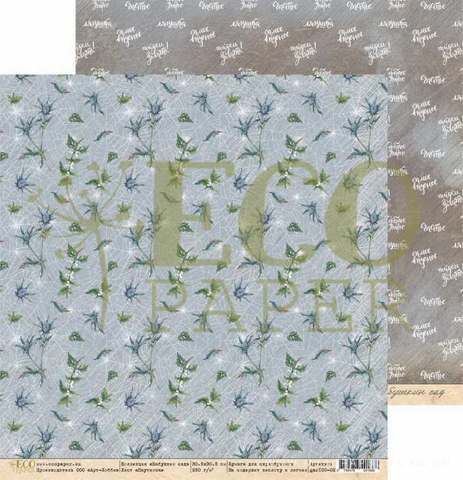 Бумага для скрапбукинга БАБУШКИН САД Паутинка, 30,5*30,5 см, двусторонняя