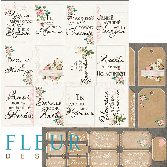Бумага для скрапбукинга по листу НАТЮР, Теги, 30,5x30,5 см, двусторонняя