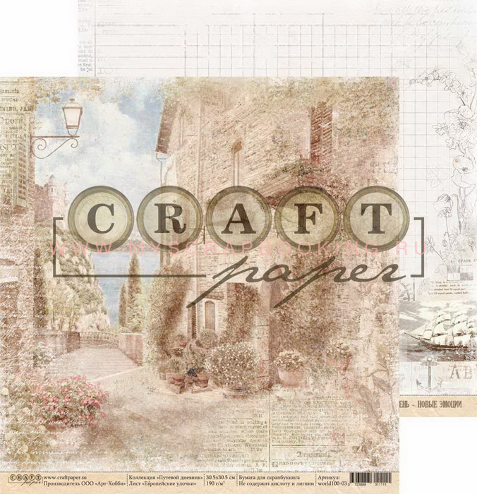 Бумага для скрапбукинга ПУТЕВОЙ ДНЕВНИК Европейские улочки, 30,5*30,5 см, двусторонняя