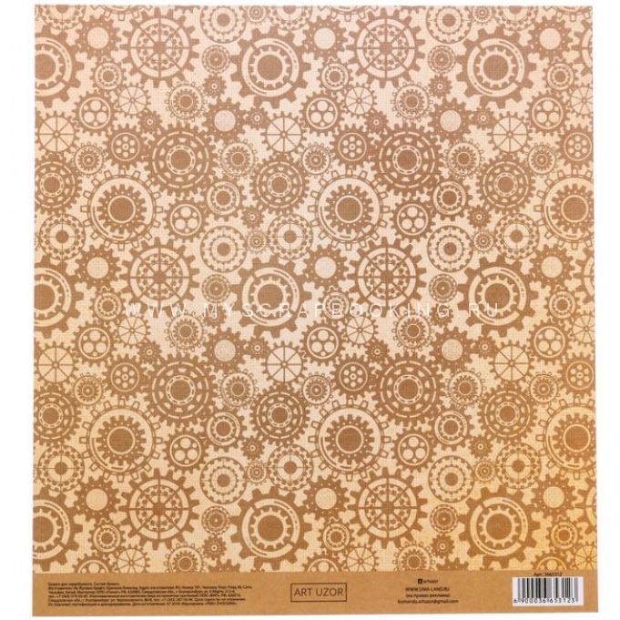 Бумага для скрапбукинга с клеевым слоем МЕХАНИЗМЫ, 20*21,5 см, 250 г/м односторонняя