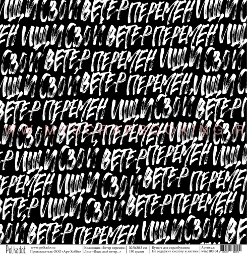 Бумага для скрапбукинга ВЕТЕР ПЕРЕМЕН, Ищи свой ветер..., 30,5*30,5 см, односторонняя