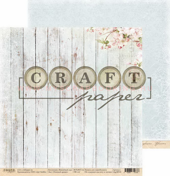 Бумага для скрапбукинга ВИШНЕВЫЙ САД Нежный аромат, 30,5*30,5 см, двусторонняя