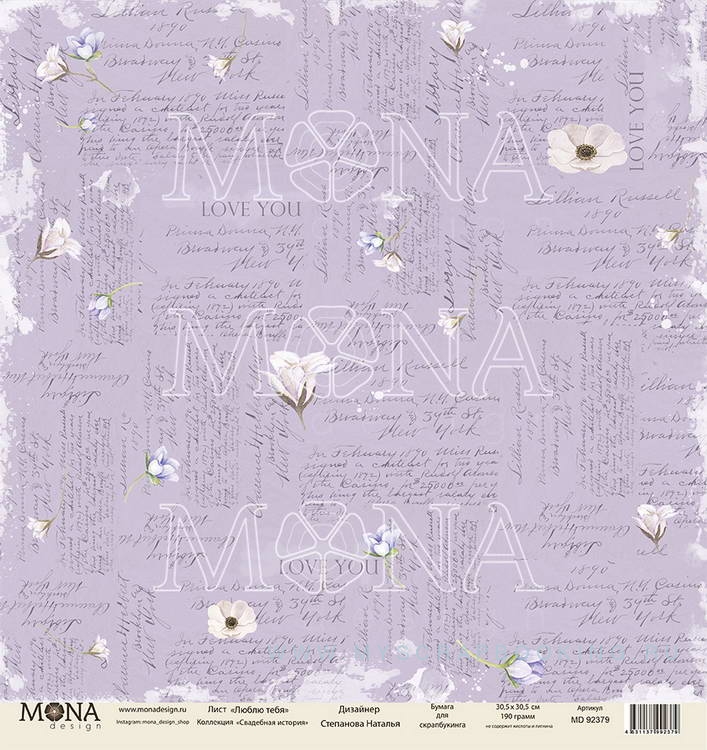 Бумага по листу СВАДЕБНАЯ ИСТОРИЯ, Люблю тебя, 30,5*30,5, односторонняя