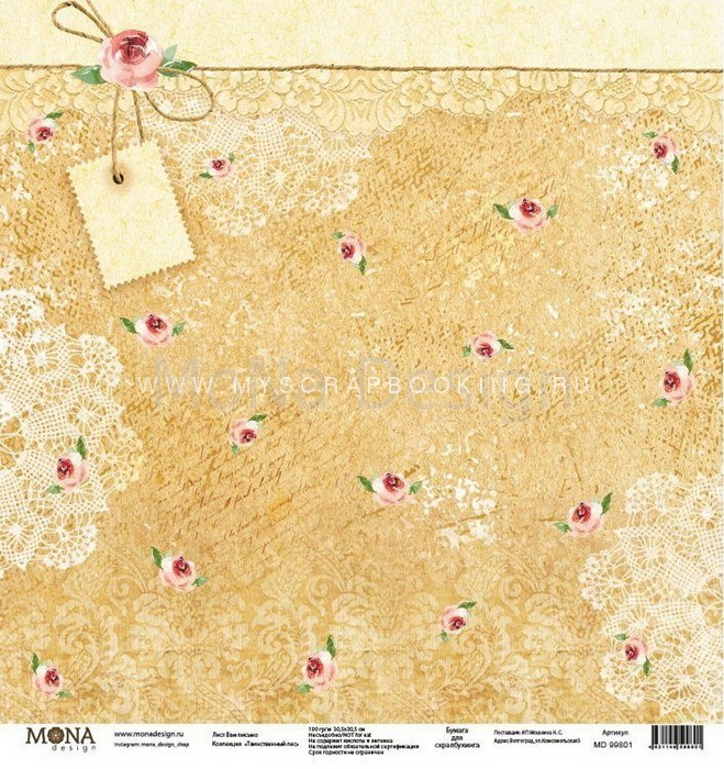 Бумага по листу ТАИНСТВЕННЫЙ ЛЕС Вам письмо, 30,5*30,5 см, односторонняя