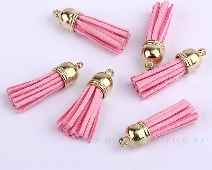 Декоративный элемент искусственная замша, КИСТОЧКА, РОЗОВЫЙ с ЗОЛОТОМ, 3,5 см