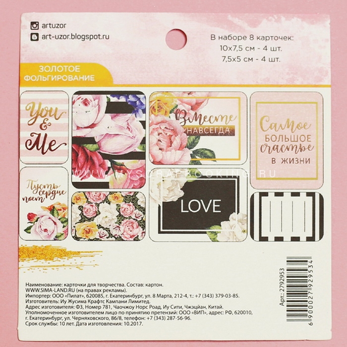 Набор карточек для творчества с фольгированием ВМЕСТЕ НАВСЕГДА, 8 шт
