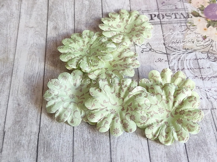 Набор принтованных бумажных цветочков САЛАТОВЫЙ узор